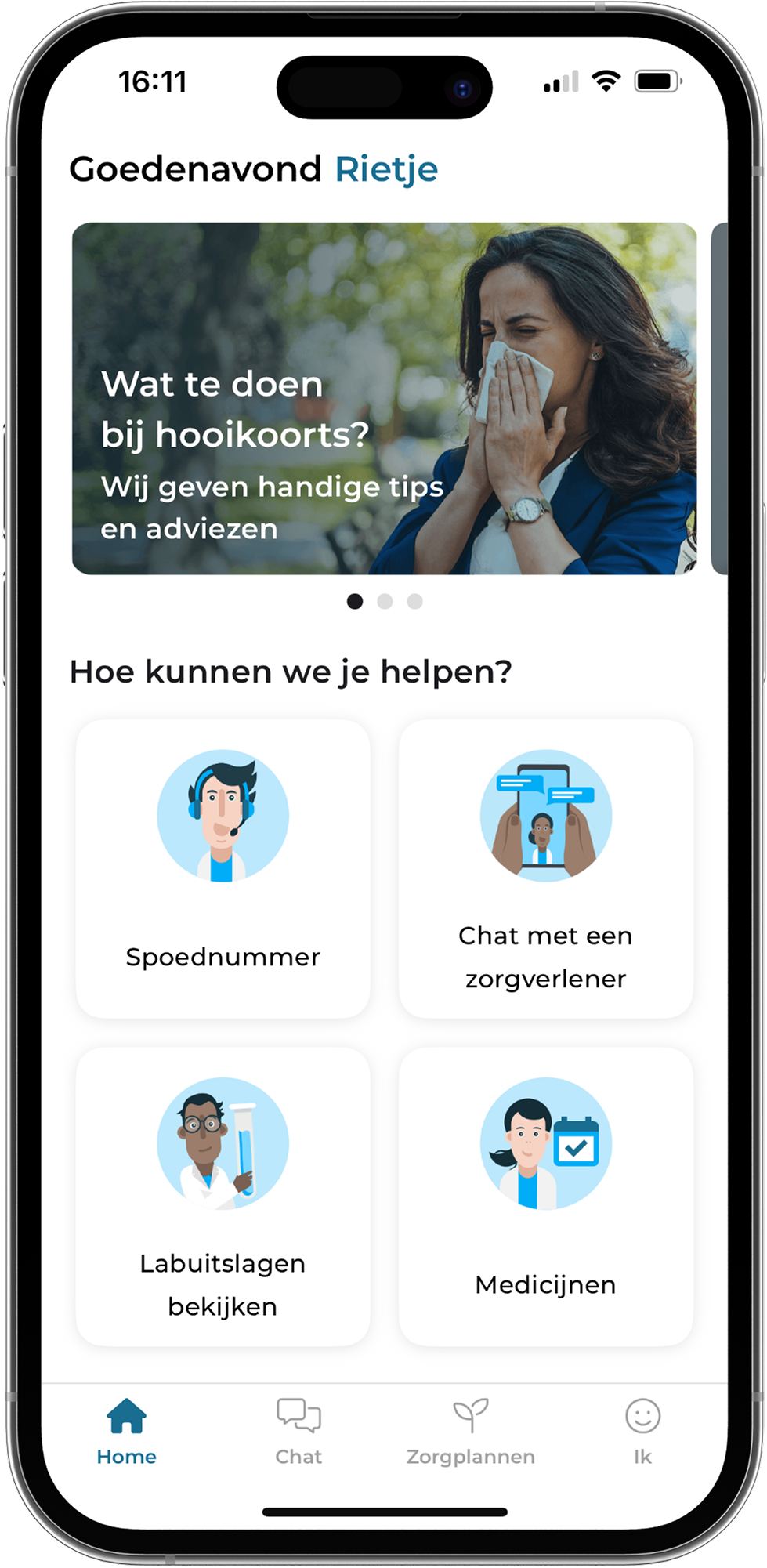 Kijk voor de contactgegevens en telefonische bereikbaarheid van jouw praktijk in de app bij je profiel: 'Ik-pagina'.