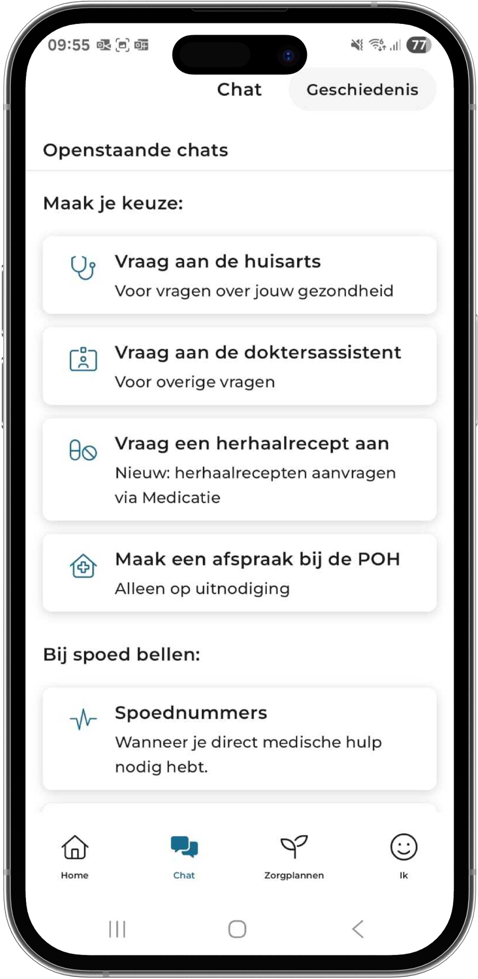 Let op: niet alle huisartsenpraktijken werken op deze manier. Als jouw praktijk geen e-mail heeft gestuurd, kun je een chat starten met de doktersassistent. Zij helpen je graag verder.Hoe plan je een afspraak bij de POH-s op uitnodiging?